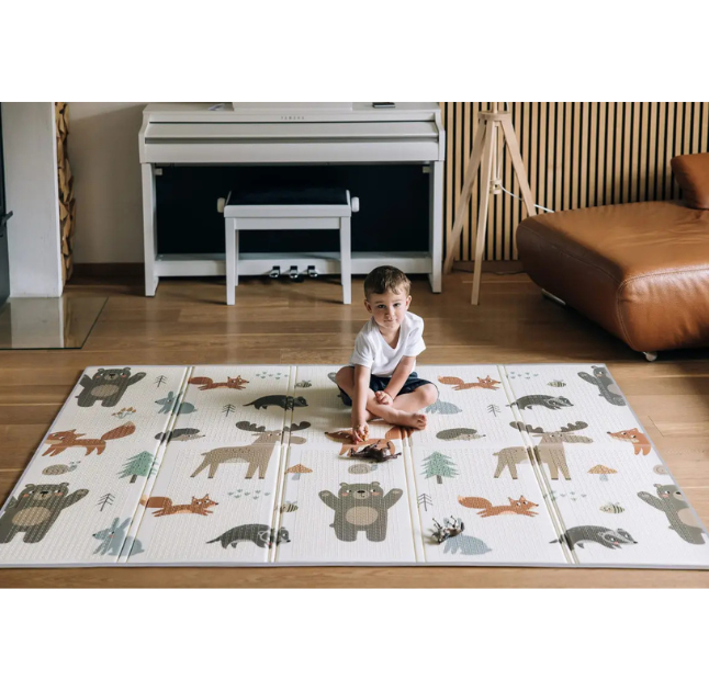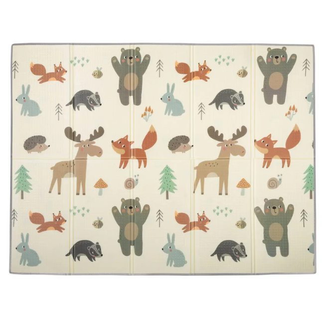 Ігровий килимок виготовлений з піни XPE і покритий фольгою, що робить його дуже легким у догляді. Завдяки своєму складу, він підходить для використання як в приміщенні, так і на вулиці. Килимок упакований в зручну сумку, яку можна брати з собою куди завгодно.