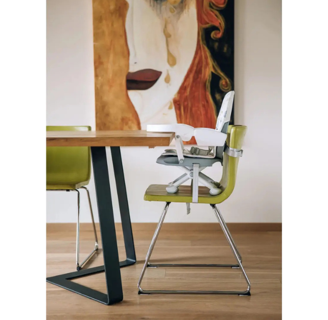 Ексклюзивний стілець для годування, який забезпечує оптимальні умови для годування малюка. Підходить для малюків від 6 місяців до 3 років. Мінімалістичний, сучасний і функціональний дитячий стілець з регульованою спинкою і ременями безпеки забезпечує безпечне і комфортне годування. Дитині сподобається крісло завдяки м`якій оббивці, яка забезпечує зручне сидіння та активну участь у дослідженні їжі та переналаштуванні на самостійне харчування. Система легкого складання допомагає зберігати стілець, коли він вам не потрібен, і отримати дорогоцінний додатковий простір у невеликих квартирах.