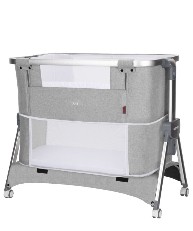 CARRELLO Aria CRL-16401 — це багатофункціональне дитяче ліжечко-манеж, яке забезпечує комфорт і безпеку для малюків від народження до приблизно 6 місяців або до 9 кг. Ця модель може використовуватись як окреме ліжечко або приставне до батьківського ліжка.
