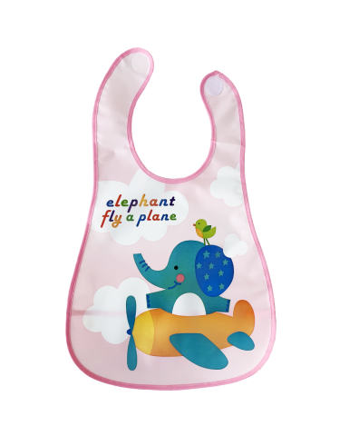 Juno, інтернет-магазин дитячих товарів\\Слинявчик цератовий на липучці рожевий "Слон на літаку"