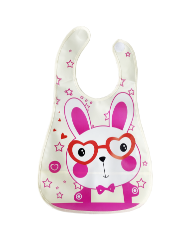 Juno, інтернет-магазин дитячих товарів\\Слинявчик цератовий на липучці бежевий "Заєць в окулярах"