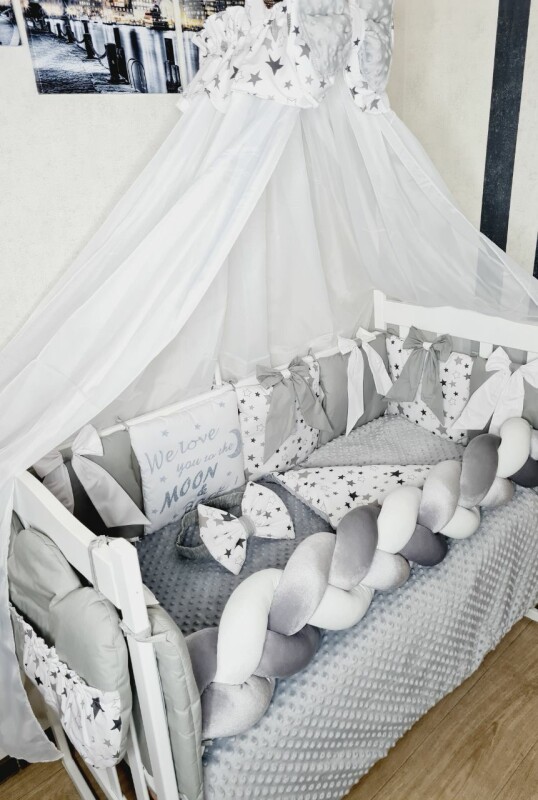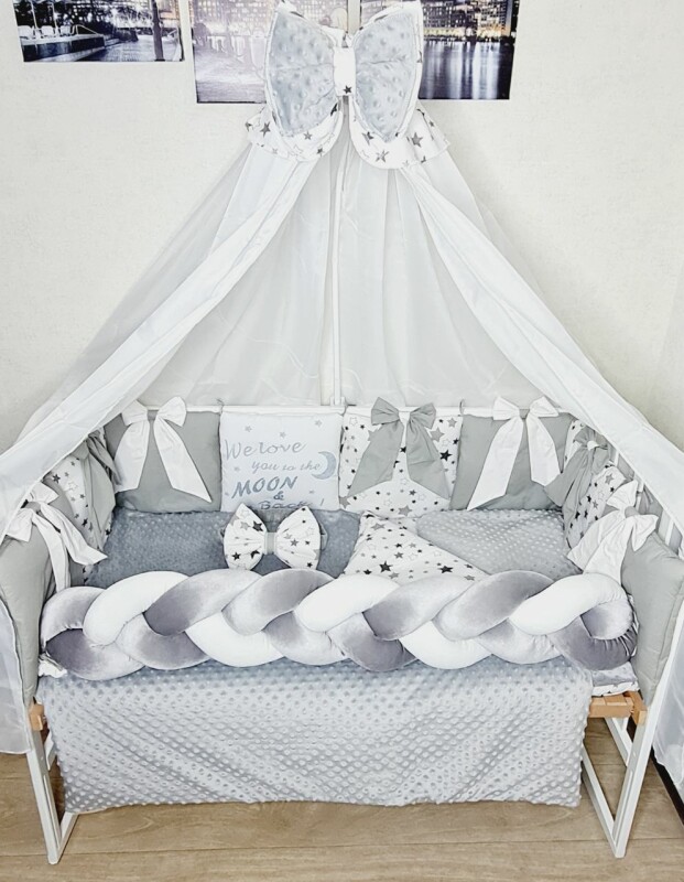 Juno, інтернет-магазин дитячих товарів\\Комплект постільної білизни Bonna Bant and Koss в дитяче ліжечко Зірки Сірий