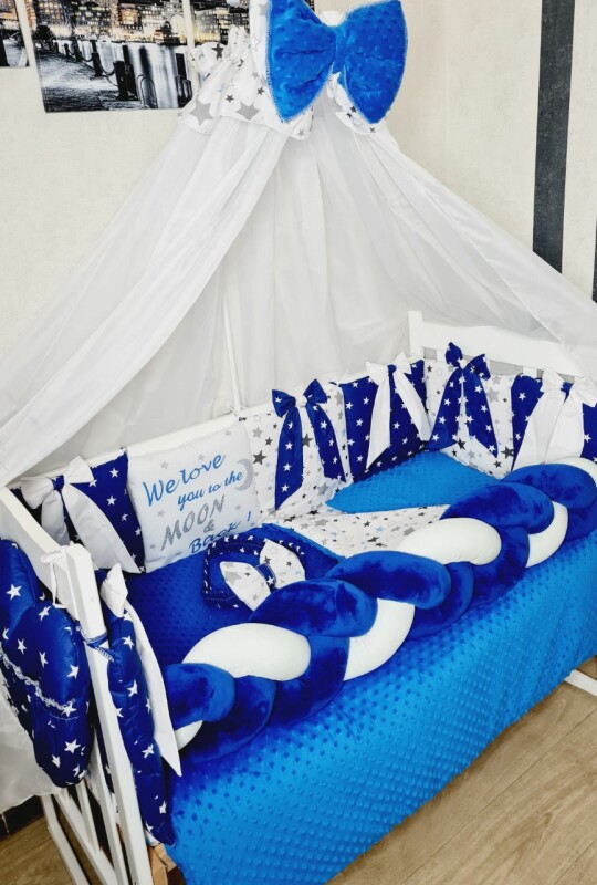 Juno, інтернет-магазин дитячих товарів\\Комплект постільної білизни Bonna Bant and Koss в дитяче ліжечко Зірки Синій