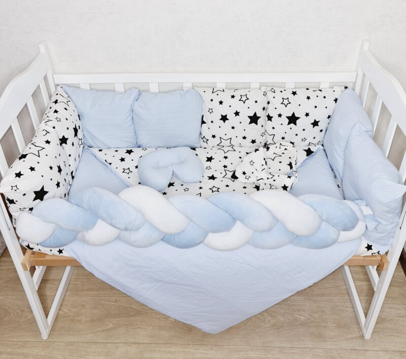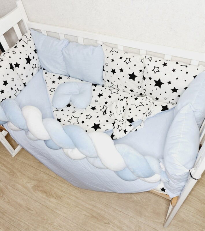 Juno, інтернет-магазин дитячих товарів\\Комплект постільної білизни Bonna Elegance в дитяче ліжечко Зірочки Світло-блакитні