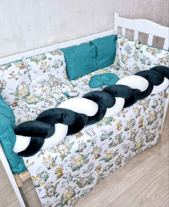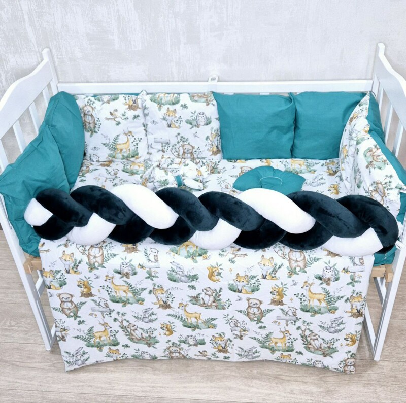 Juno, інтернет-магазин дитячих товарів\\Комплект постільної білизни Bonna Elegance в дитяче ліжечко Лісові звірята ізумрудні