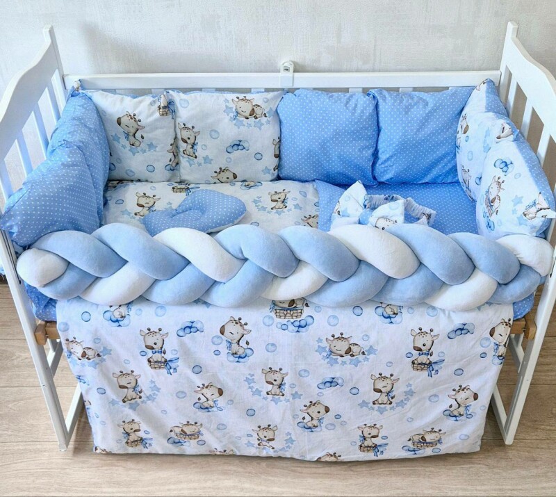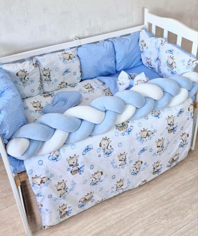 Juno, інтернет-магазин дитячих товарів\\Комплект постільної білизни Bonna Elegance New в дитяче ліжечко Жирафка Блакитний