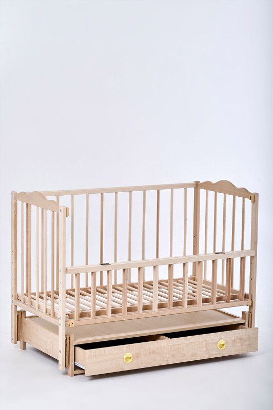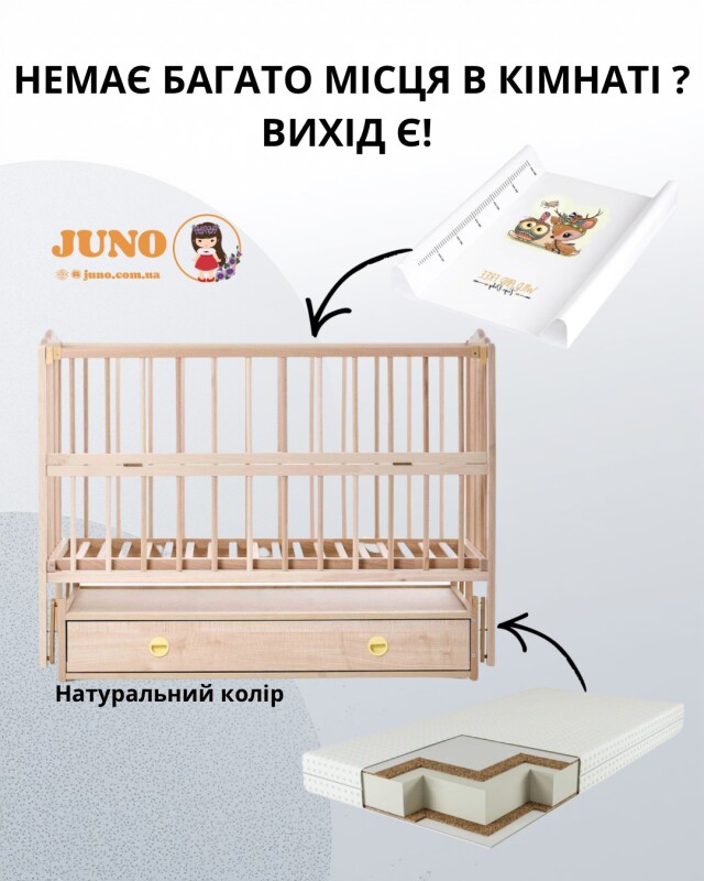 Ліжечко з поперечним маятником забезпечує легке та плавне укачування малюка, а вмістка шухляда допоможе зручно зберігати всі необхідні речі. Твердий пеленатор, який надійно кріпиться до ліжечка, робить щоденний догляд за дитиною простим і комфортним.