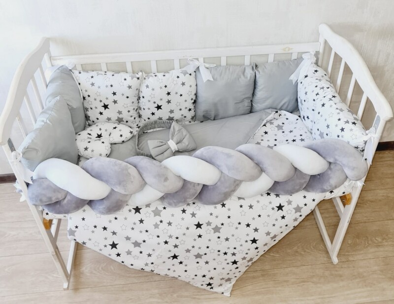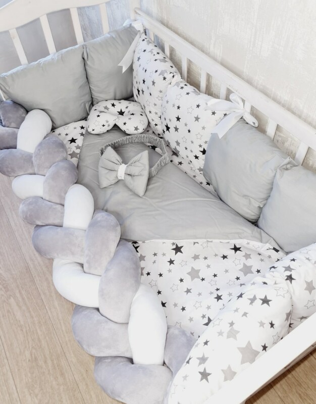 Juno, інтернет-магазин дитячих товарів / Товари / Комплект постільної білизни Bonna Elegance в дитяче ліжечко Зірочки сірі з однотонном