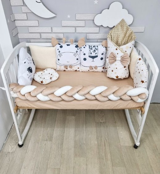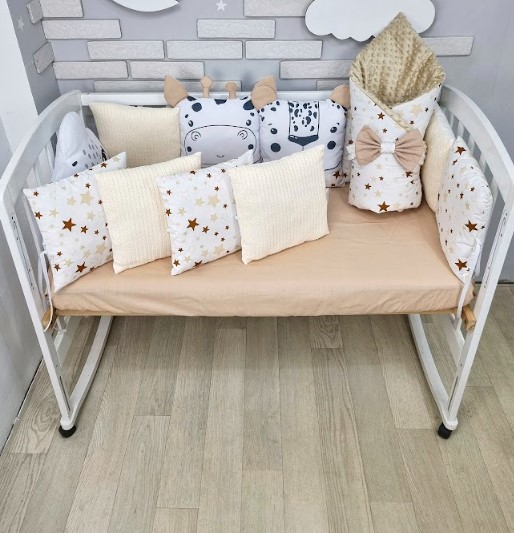 Комплект постільної білизни в дитяче ліжечко Молочно-бежевий в зірочку NEW