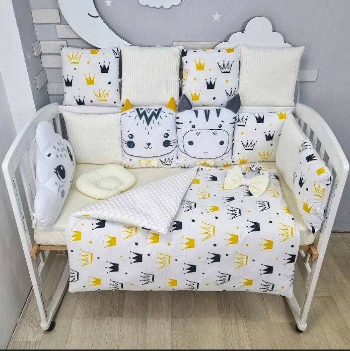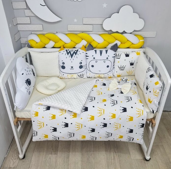 Juno, інтернет-магазин дитячих товарів / Товари / Комплект постільної білизни в дитяче ліжечко Жовтий з коронами NEW