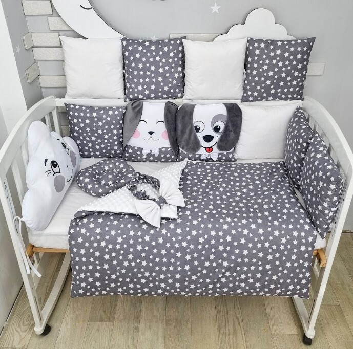 Juno, інтернет-магазин дитячих товарів / Товари / Комплект постільної білизни в дитяче ліжечко Графітовий NEW