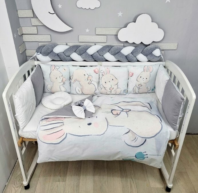 Juno, інтернет-магазин дитячих товарів / Товари / Комплект постільної білизни Принт Польська бязь Зайка з морквою сірий NEW