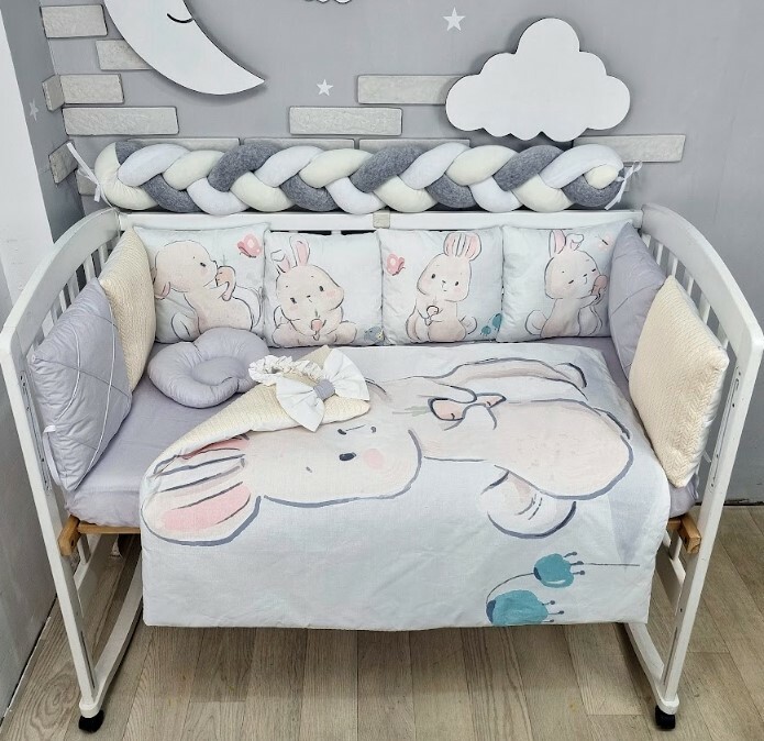 Juno, інтернет-магазин дитячих товарів / Товари / Комплект постільної білизни Принт Польська бязь Зайка з морквою молочно-сірий NEW