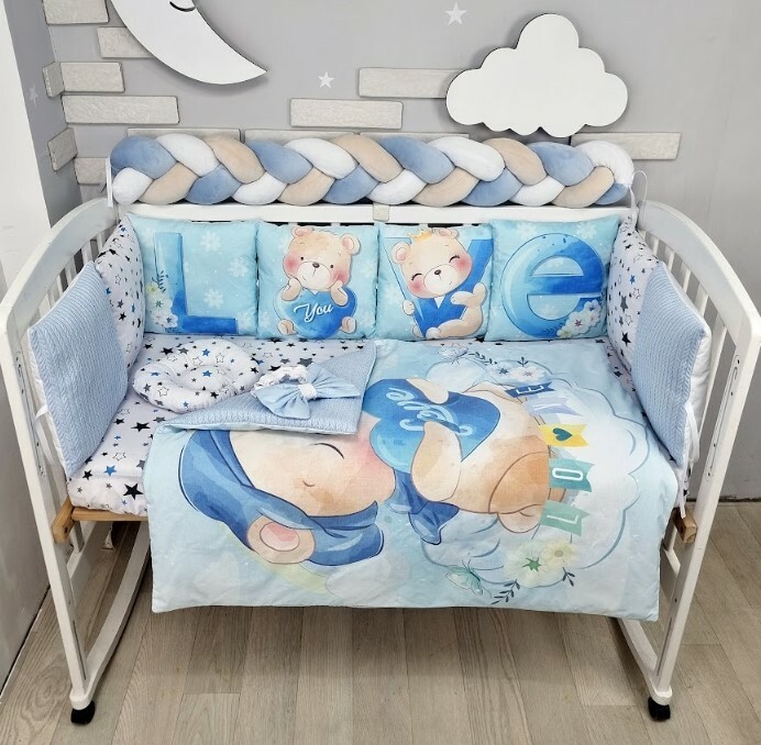 Juno, інтернет-магазин дитячих товарів / Товари / Комплект постільної білизни Принт Польська бязь Ведмедик love блакитний NEW