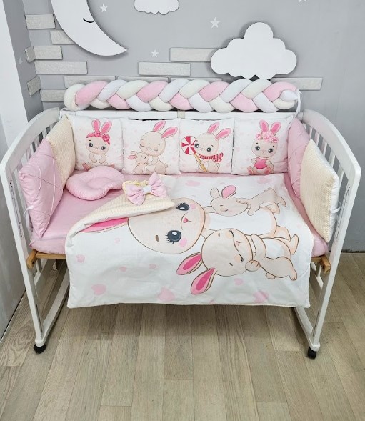 Juno, інтернет-магазин дитячих товарів / Товари / Комплект постільної білизни Принт Польська бязь Зайка з дітками рожева NEW