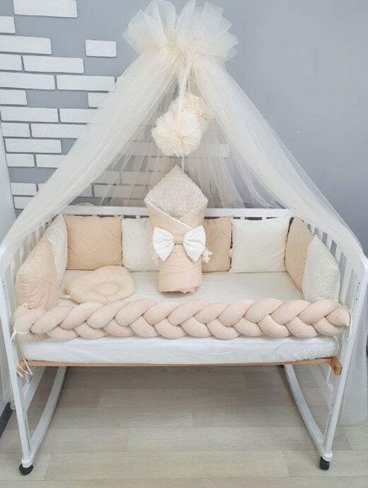 Бортики на 4 сторони зі з'ємними наволочками / або на 3 сторони+косичка 120см,