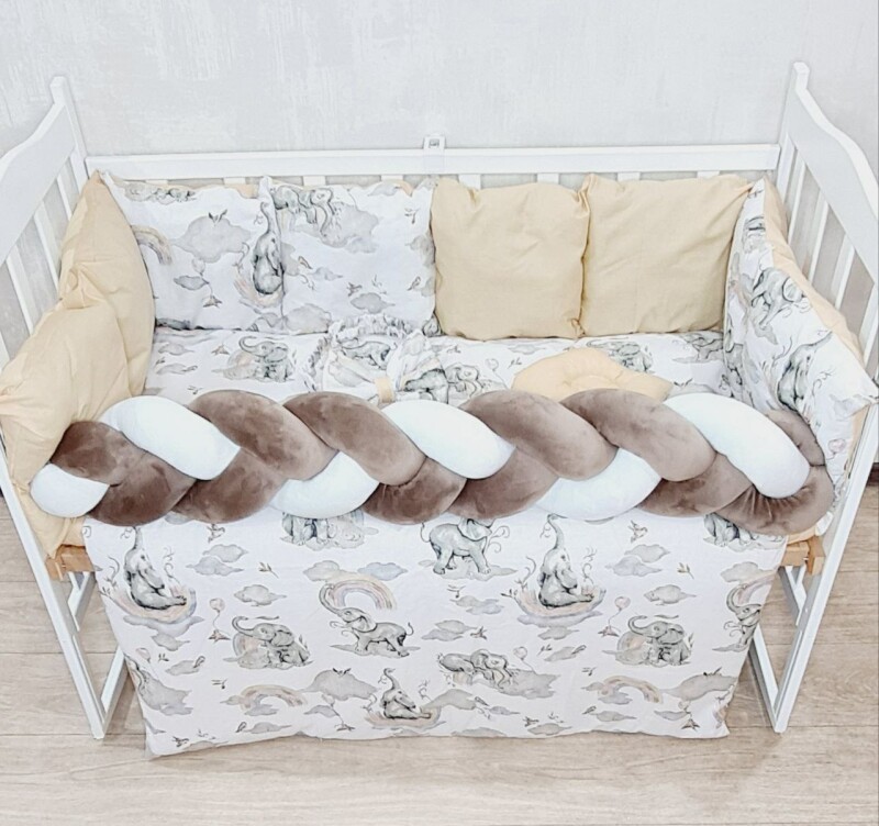 Juno, інтернет-магазин дитячих товарів / Товари / Комплект постільної білизни Bonna Elegance New в дитяче ліжечко Слоненя Бежевий