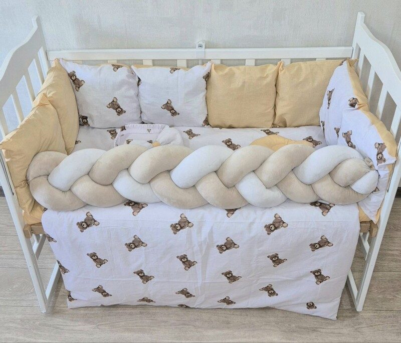 Juno, інтернет-магазин дитячих товарів / Товари / Комплект постільної білизни Bonna Elegance New в дитяче ліжечко Ведмедики Жовті однотонні