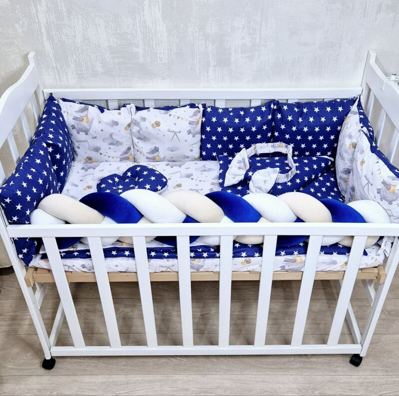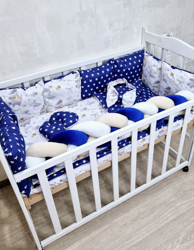 Juno, інтернет-магазин дитячих товарів / Товари / Комплект постільної білизни Bonna Elegance New в дитяче ліжечко Єнот Темно-синій
