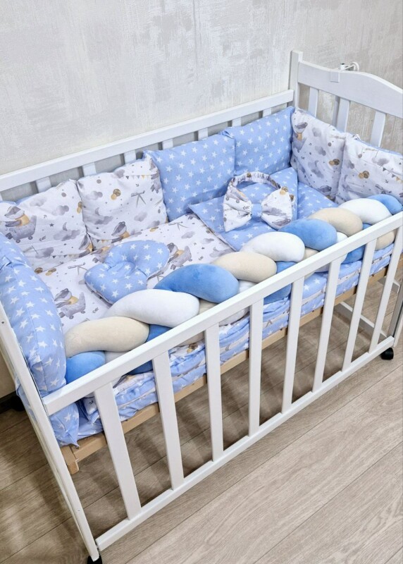 Juno, інтернет-магазин дитячих товарів / Товари / Комплект постільної білизни Bonna Elegance New в дитяче ліжечко Єнот Блакитні зірки