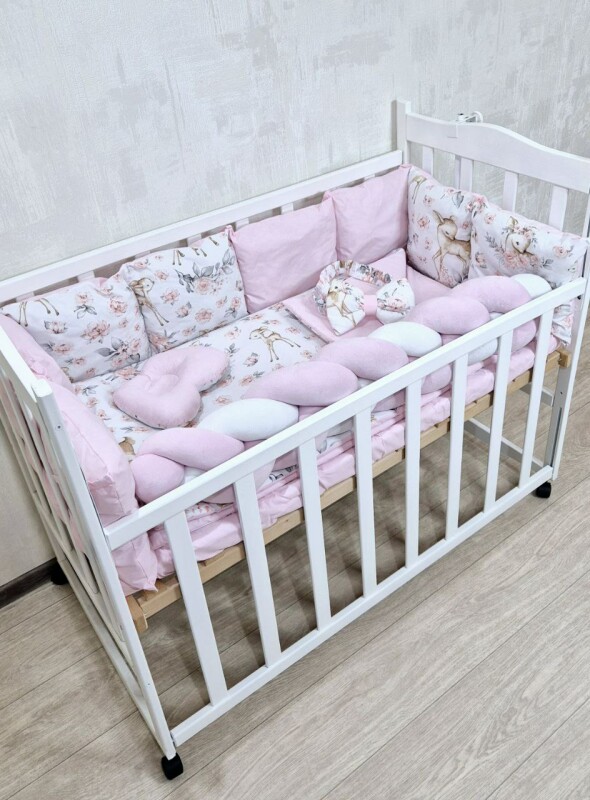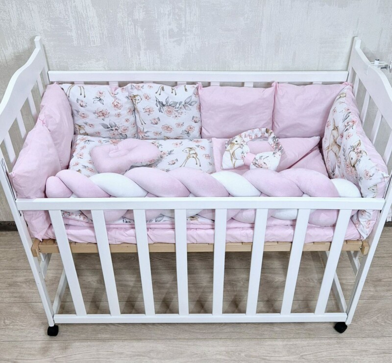Juno, інтернет-магазин дитячих товарів / Товари / Комплект постільної білизни Bonna Elegance New в дитяче ліжечко Оленятко з квіточками Рожевий