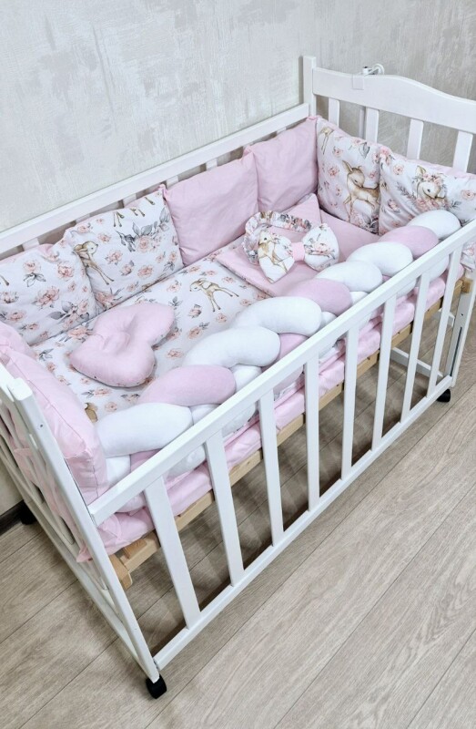 Juno, інтернет-магазин дитячих товарів / Товари / Комплект постільної білизни Bonna Elegance New в дитяче ліжечко Оленятко з квіточками Біло-рожевий