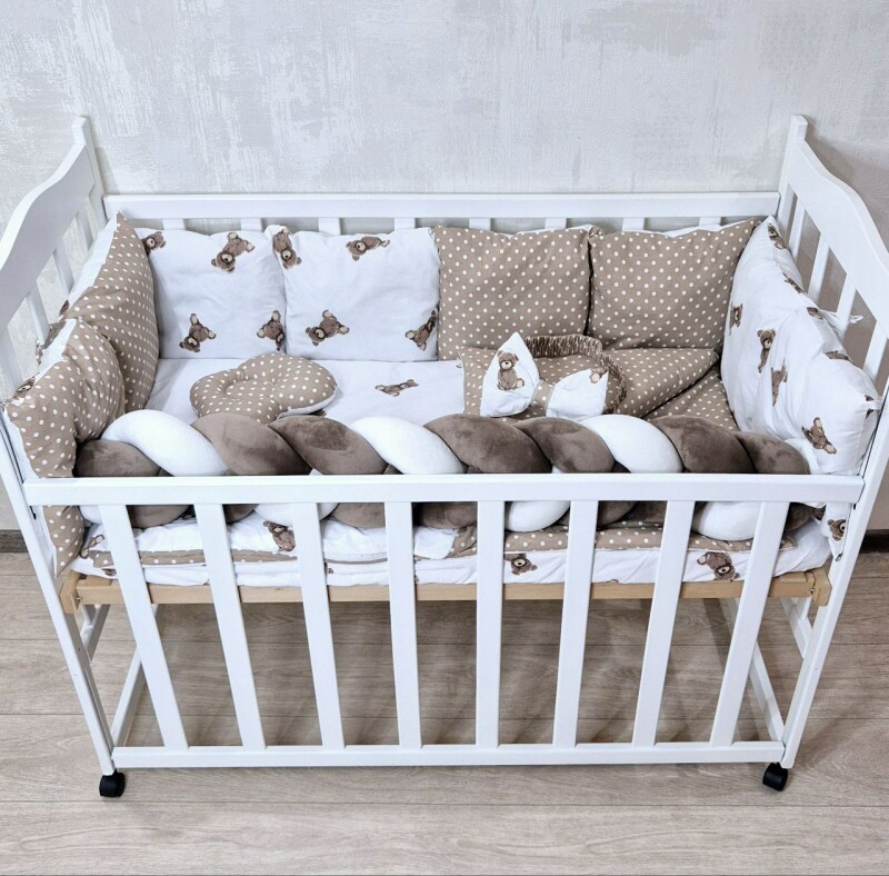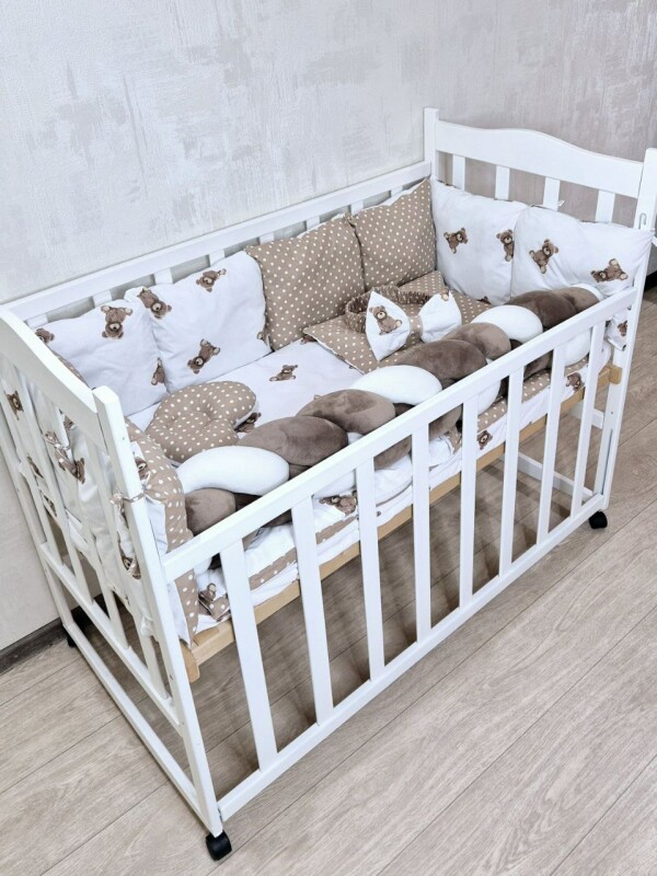 Juno, інтернет-магазин дитячих товарів / Товари / Комплект постільної білизни Bonna Elegance New в дитяче ліжечко Ведмеді Коричневі Однотон