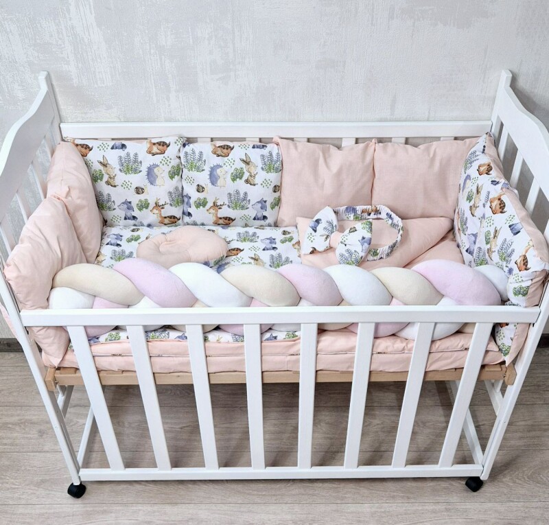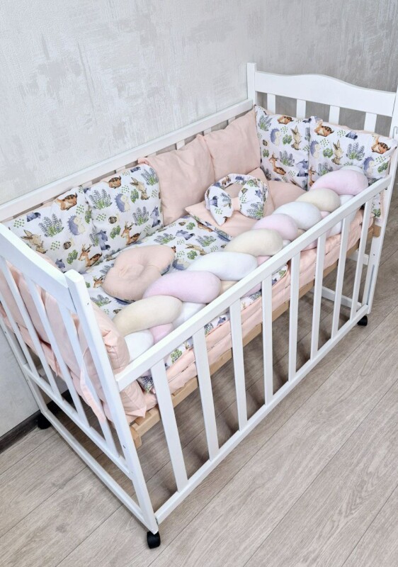 Juno, інтернет-магазин дитячих товарів / Товари / Комплект постільної білизни Bonna Elegance New в дитяче ліжечко Лісні звірятка Персик