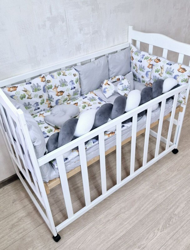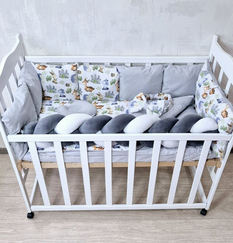 Juno, інтернет-магазин дитячих товарів / Товари / Комплект постільної білизни Bonna Elegance New в дитяче ліжечко Лісні звірятка Сіра коса