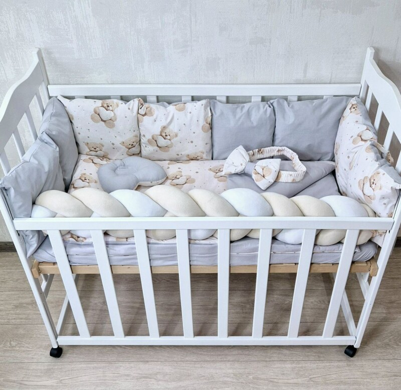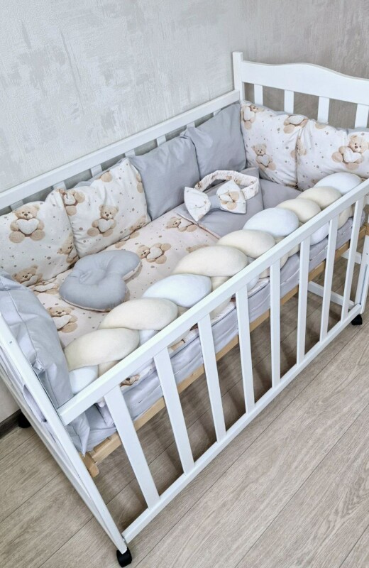 Juno, інтернет-магазин дитячих товарів / Товари / Комплект постільної білизни Bonna Elegance New в дитяче ліжечко Ведмедик з серцем Сірий