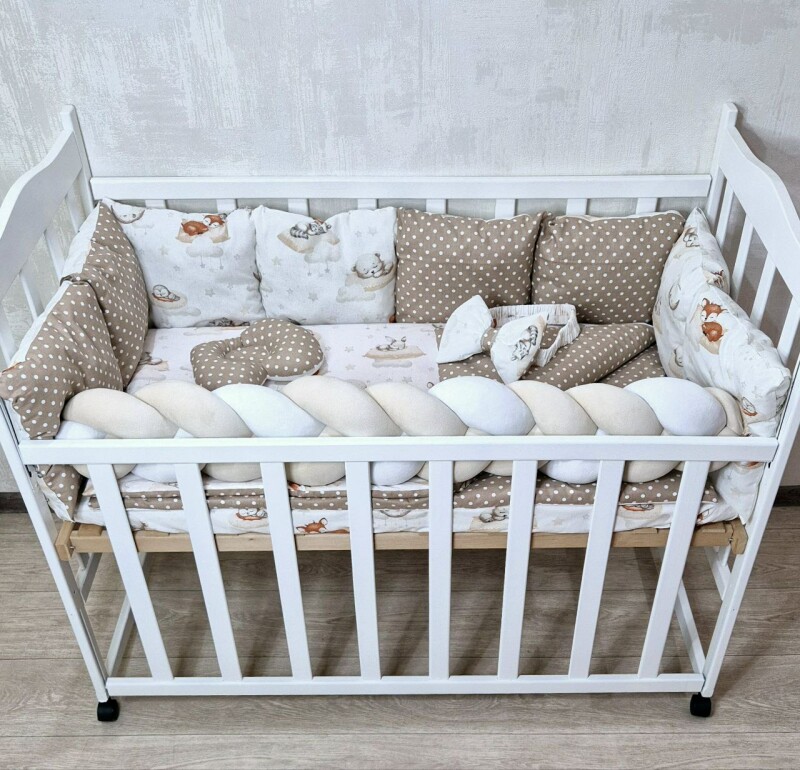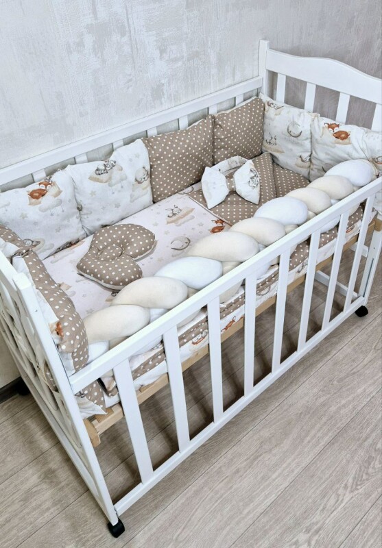 Juno, інтернет-магазин дитячих товарів / Товари / Комплект постільної білизни Bonna Elegance New в дитяче ліжечко Сплячі звірі Коричневий горох
