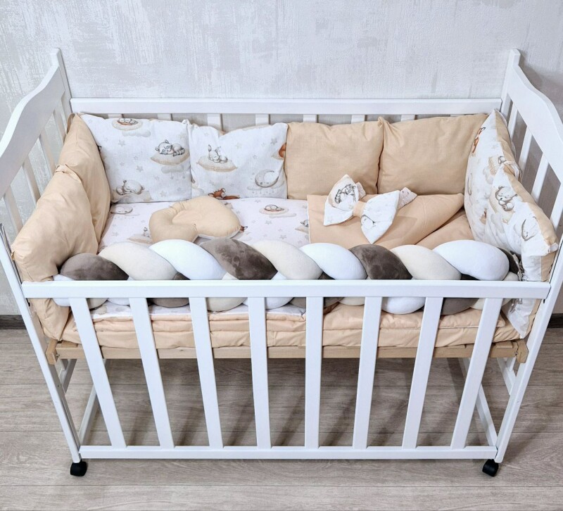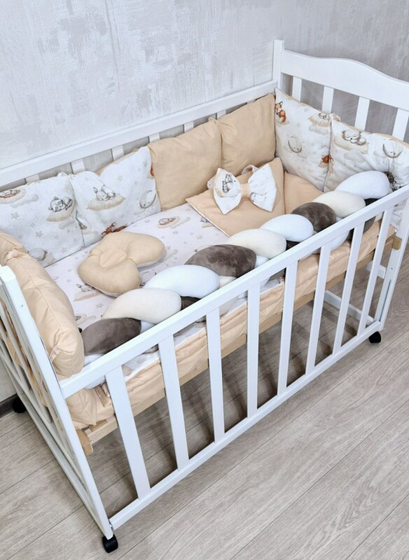 Juno, інтернет-магазин дитячих товарів / Товари / Комплект постільної білизни Bonna Elegance New в дитяче ліжечко Сплячі звірі Золотий Бежевий