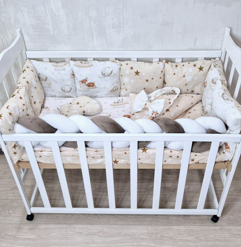 Juno, інтернет-магазин дитячих товарів / Товари / Комплект постільної білизни Bonna Elegance New в дитяче ліжечко Сплячі звірі Бежеві зірка
