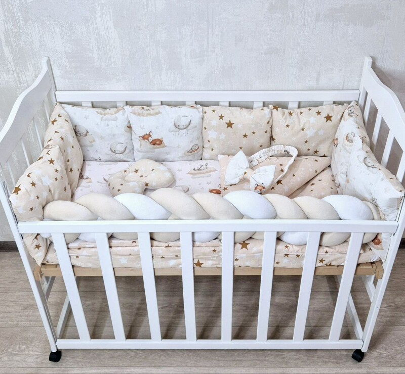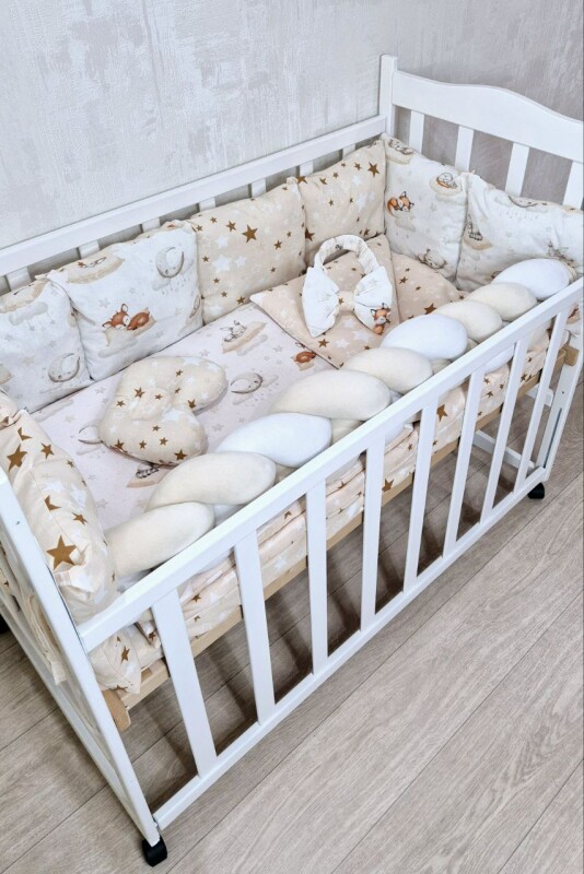 Juno, інтернет-магазин дитячих товарів / Товари / Комплект постільної білизни Bonna Elegance New в дитяче ліжечко Сплячі звірі Бежеві зірки