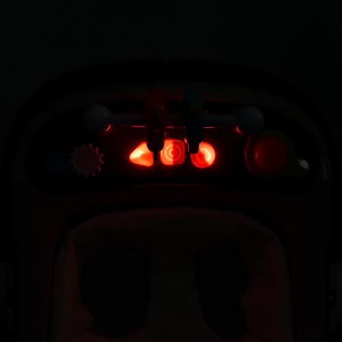 Наявна музика та світло. Ігрову панель за потребою можна зняти, працює від батарейок. Ходунки мають шість коліс (пластик+силікон), передні 5 см/задні 11,5 см.