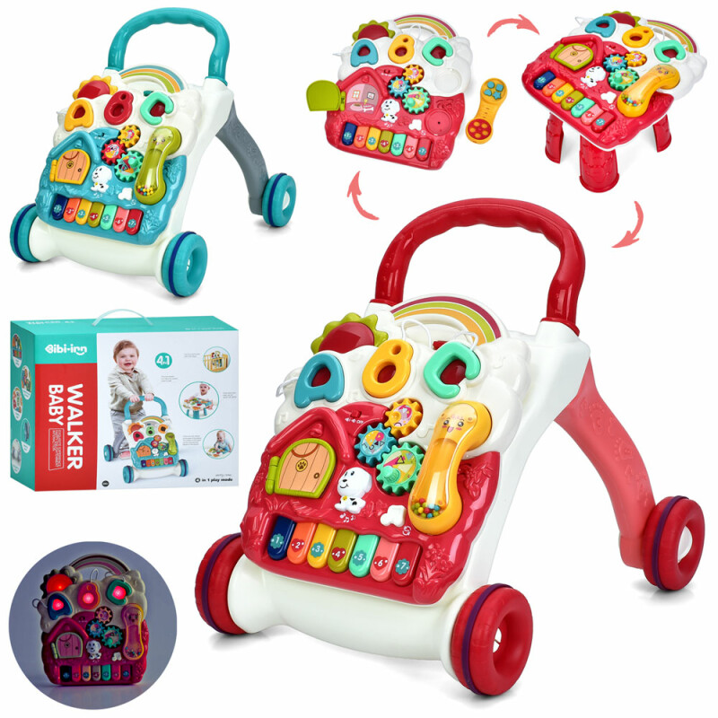 • 4в1: ходунки + ігровий столик + панель + музичний центр