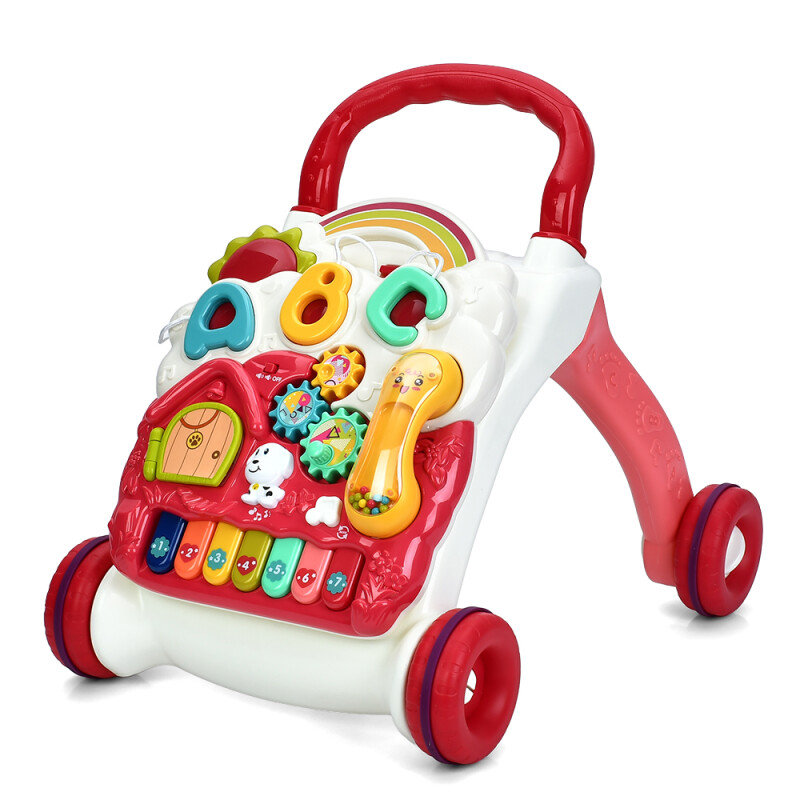 Модель поєднує в собі одразу кілька функцій: каталку-ходунки, ігровий столик, розвиваючу панель та музичний центр. Яскрава інтерактивна панель оснащена різноманітними елементами — шестернями, кнопками, сортером, піаніно та рухомими деталями, які стимулюють розвиток моторики, логіки та слуху.