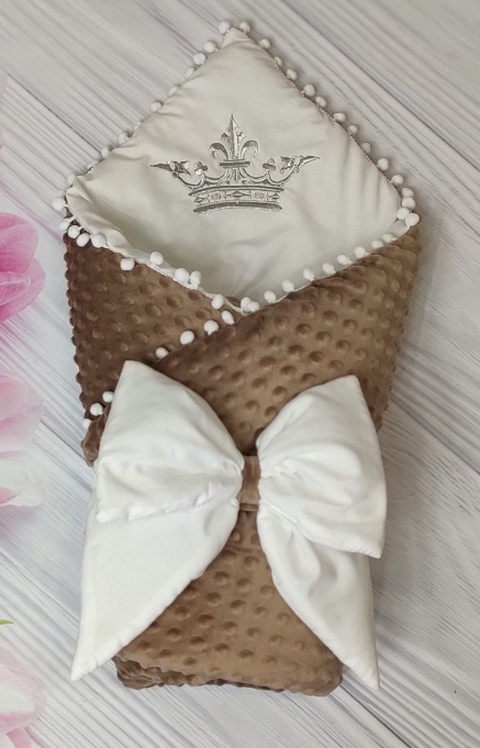 2. красивий конверт-плед з бантиком на гумці і вишивкою корона