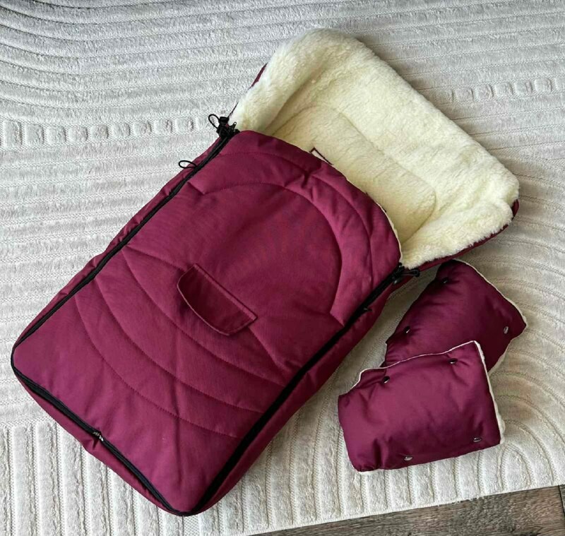 У комплекті з конвертом передбачені бахіли на ніжки малюка, щоб не бруднити овчинку зсередини.