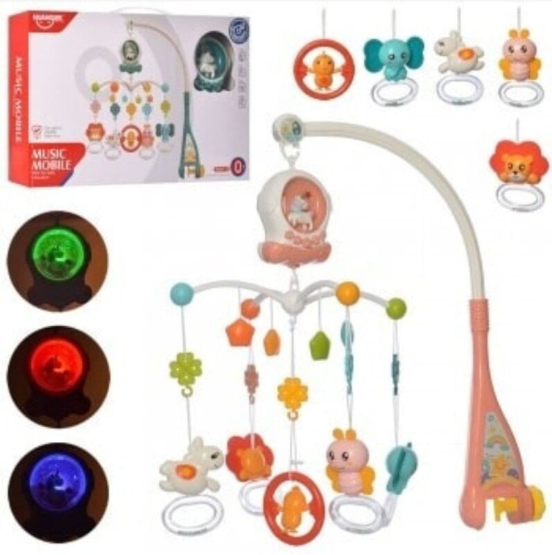 Мобіль легко кріпиться на дитяче ліжечко. Музичний мобіль є чудовим інструментом для стимуляції сенсорних відчуттів малятка: слуху, дотику, зору і колірного сприйняття.
