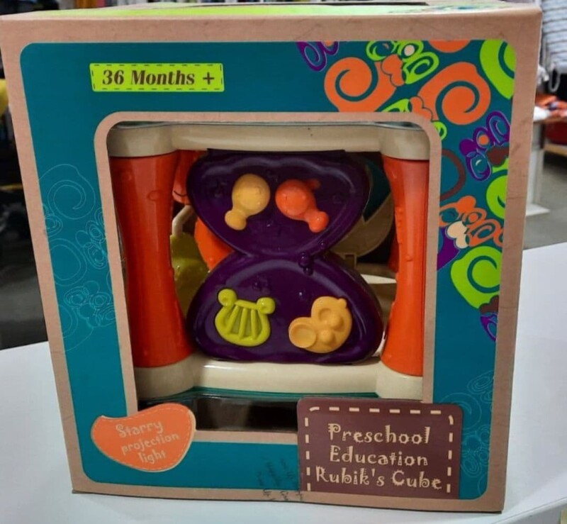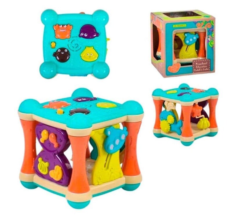 Куб виконаний з використанням контрастних кольорів для залучення та утримання уваги діток.