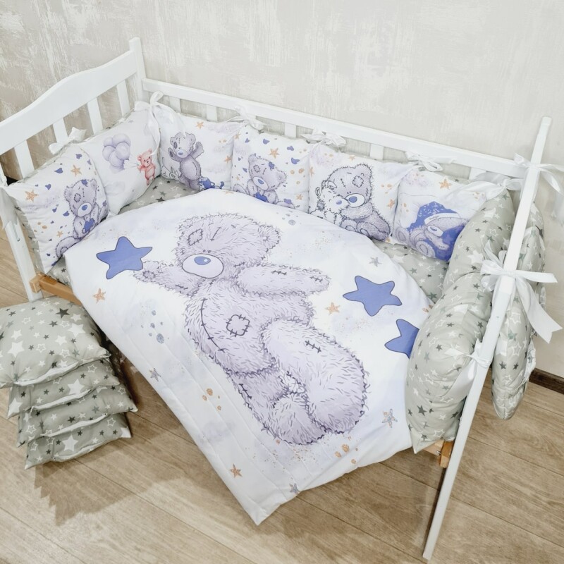 Juno, интернет-магазин детских товаров\\Комплект постільної білизни Bonna Print в дитяче ліжечко з ведмедиком синій