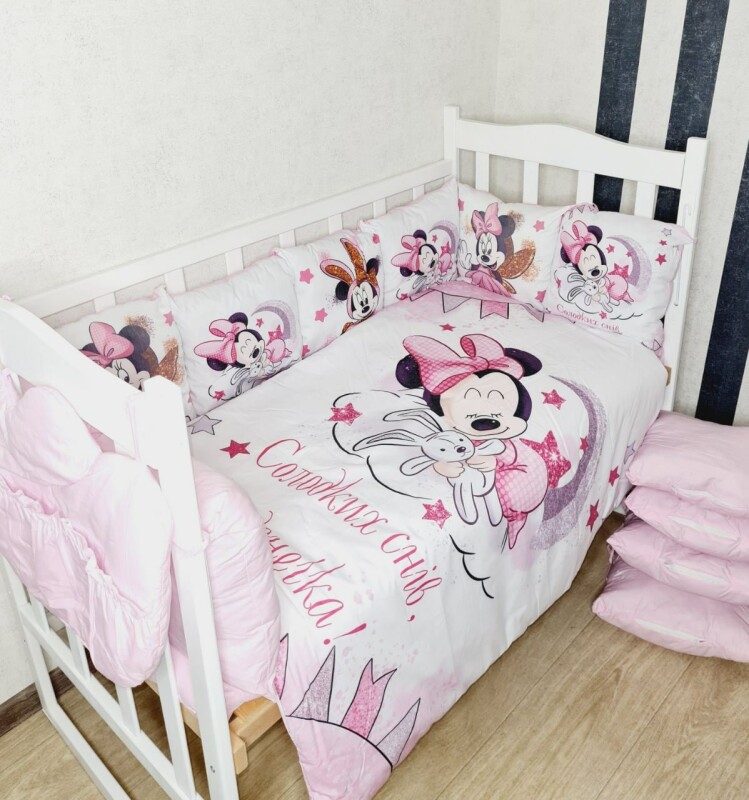 Juno, интернет-магазин детских товаров\\Комплект постільної білизни Bonna Print в дитяче ліжечко Міккі Маус рожевий