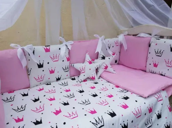 Juno, интернет-магазин детских товаров\\Комплект постільної білизни Elit Bonna в дитяче ліжечко Корона Рожева