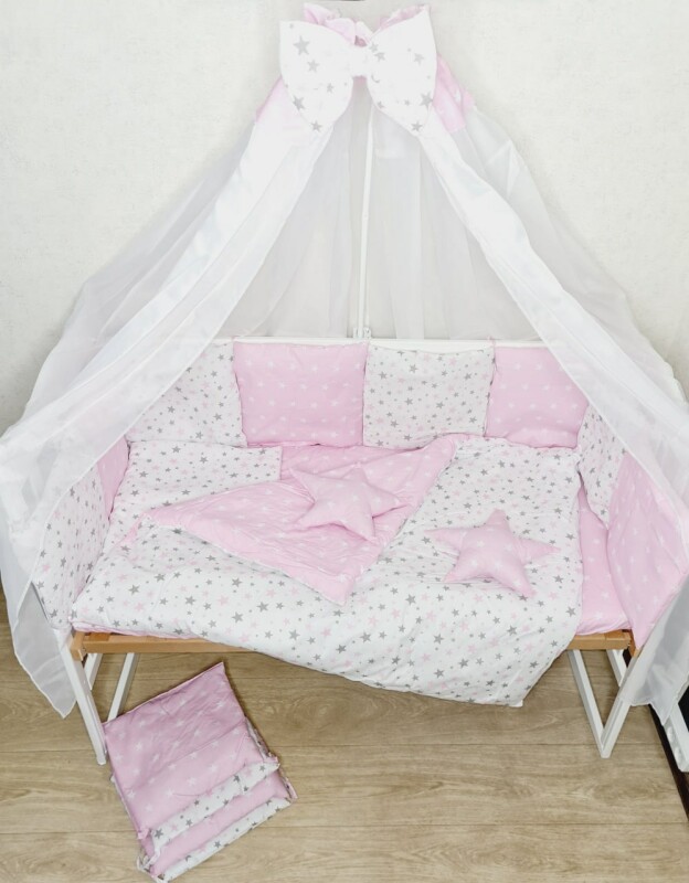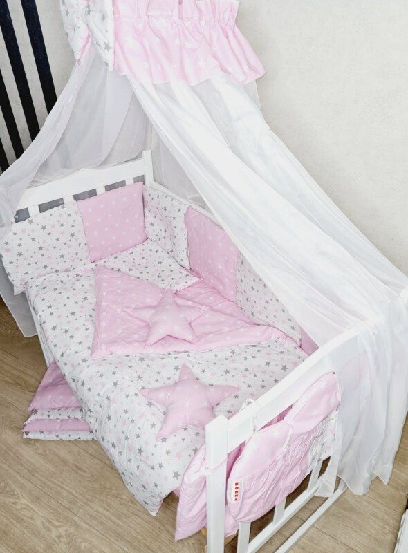 Juno, интернет-магазин детских товаров\\Комплект постільної білизни Elit Bonna в дитяче ліжечко Зірочки рожеві