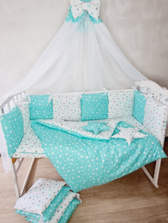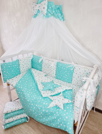 Juno, интернет-магазин детских товаров\\Комплект постільної білизни Bonna Elit в дитяче ліжечко Зірки М'ята