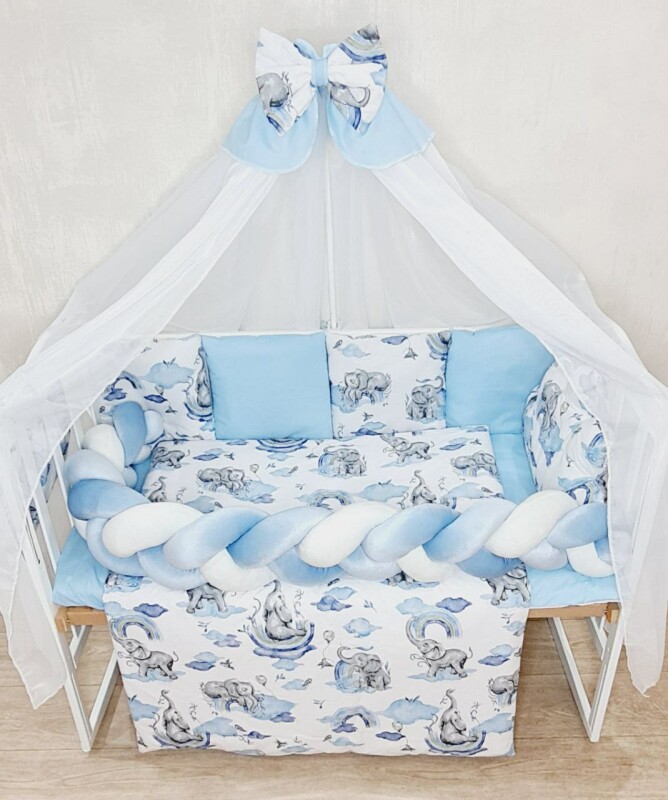 Juno, интернет-магазин детских товаров\\Комплект постільної білизни Bonna Koss в дитяче ліжечко Слоненя світло-блакитне
