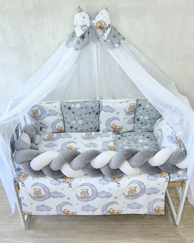 Juno, интернет-магазин детских товаров\\Комплект постільної білизни Bonna Koss в дитяче ліжечко Сонне ведмежа з зірочками