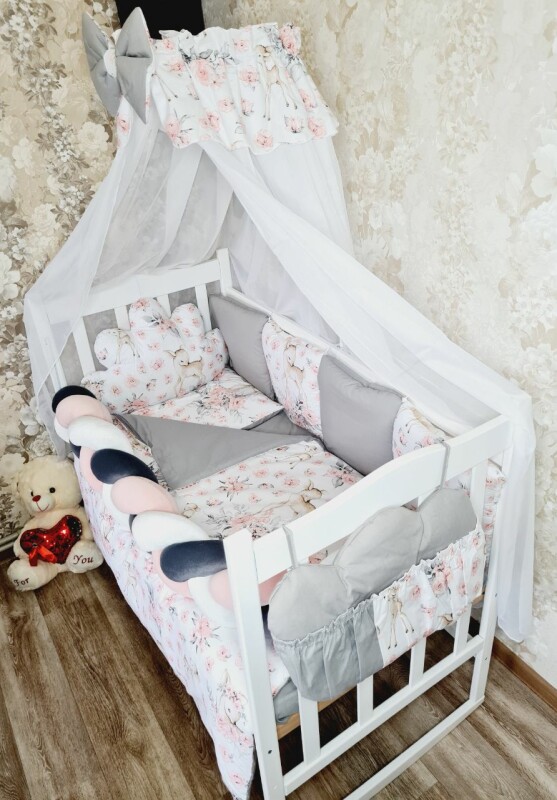 Juno, интернет-магазин детских товаров\\Комплект постільної білизни Bonna Koss в дитяче ліжечко Рожево-Сірий