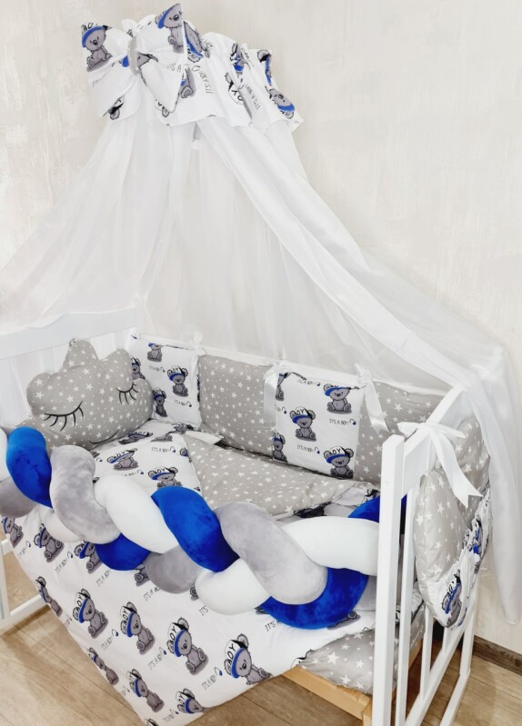 Juno, интернет-магазин детских товаров\\Комплект постільної білизни Bonna Koss в дитяче ліжечко Тедді Синій